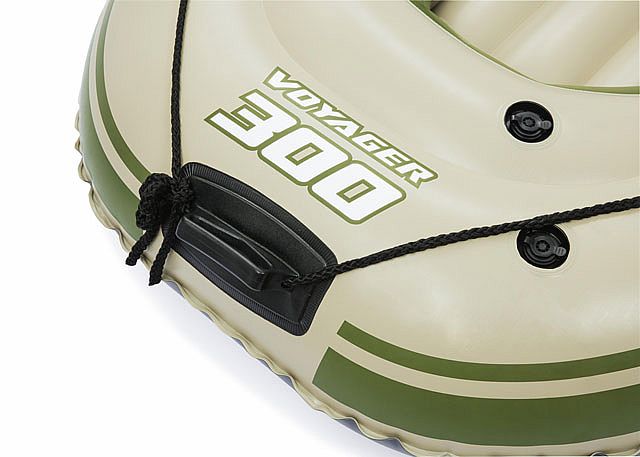 Čln VOYAGER 300. Kvalitný čln s kapacitou 2 dospelých osôb, ktorý má tri nafukovacie komory, zvyšujúce bezpečie na dlhších plavbách v prípade úniku vzduchu z jednej z komôr. Čln je vhodný aj pre rybárov.