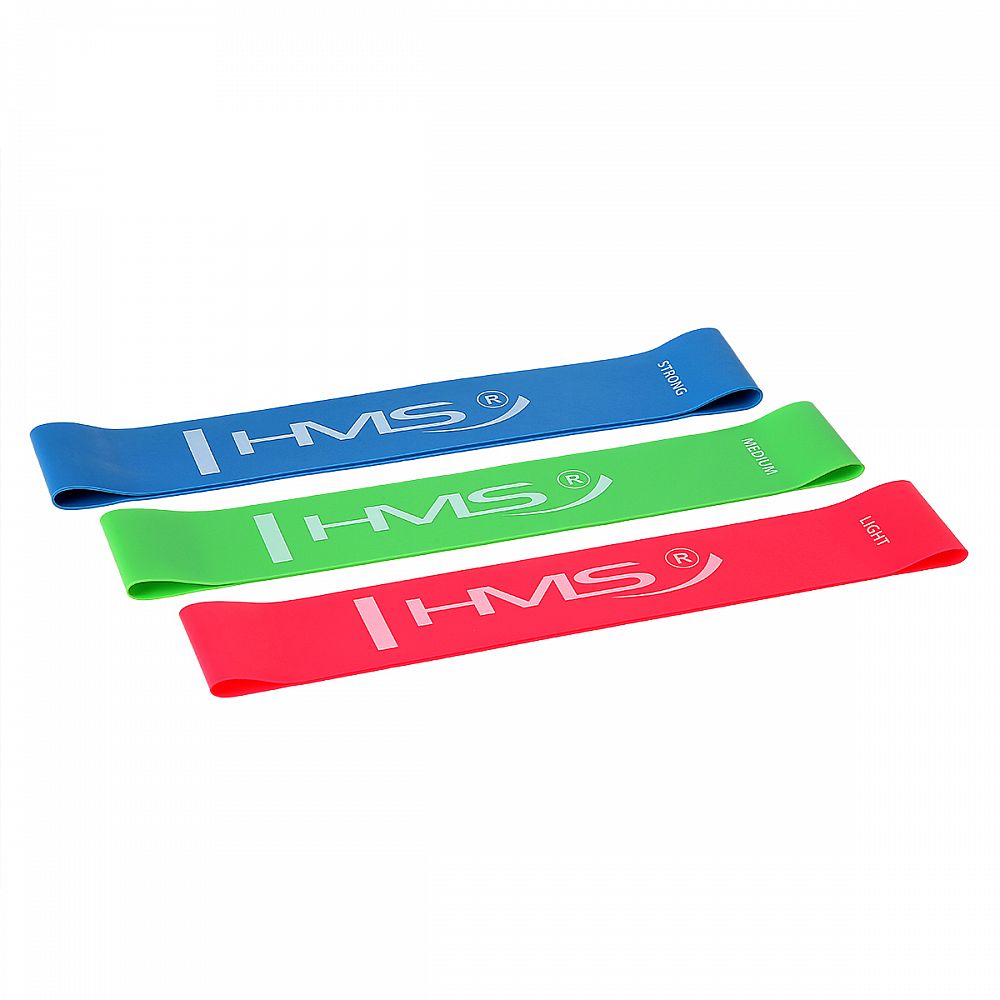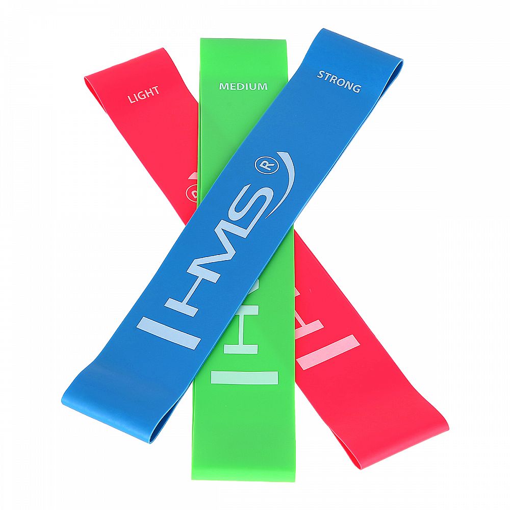 Set 3 krátkych posilňovacích gúm HMS GU04 ktoré sú využívané v silovom tréningu, kondičnom tréningu, ale aj v rehabilitačnom cvičení. V silovom tréningu slúži ako dopomoc alebo ako dynamická záťaž. Pri rehabilitácii sú využité predovšetkým po úrazoch svalov, šliach a kĺbov.