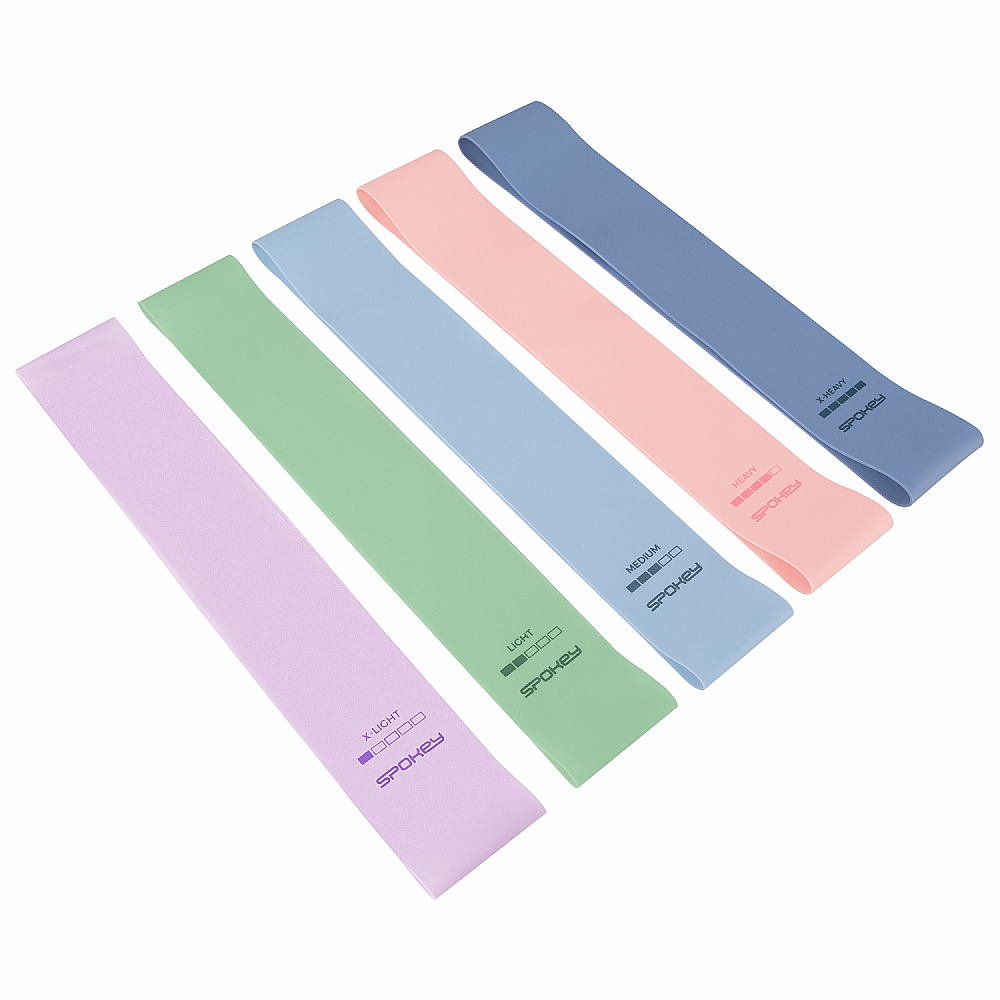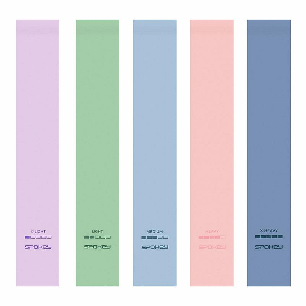 Spokey ARTIO SET Sada 5 posilňovacích gúm + obal, pastelové farby
