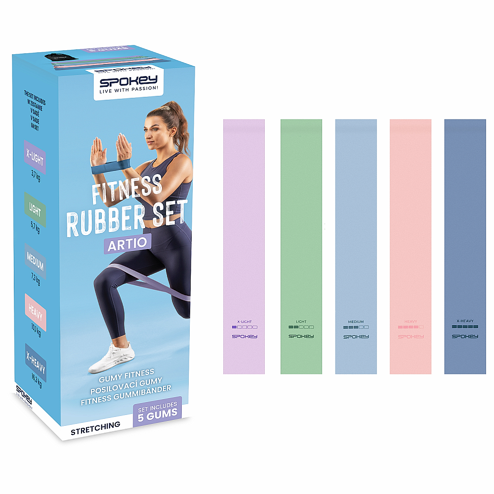 Popis: Spokey ARTIO SET Sada 5 posilňovacích gúm + obal, pastelové farby