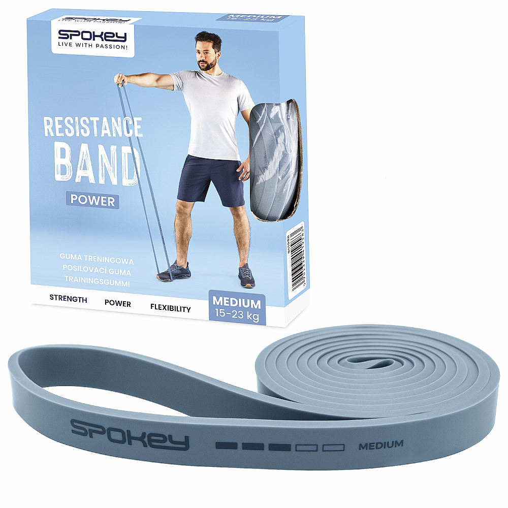 Popis: Spokey POWER MEDIUM Posilňovacia guma, 15–23 kg, modrá