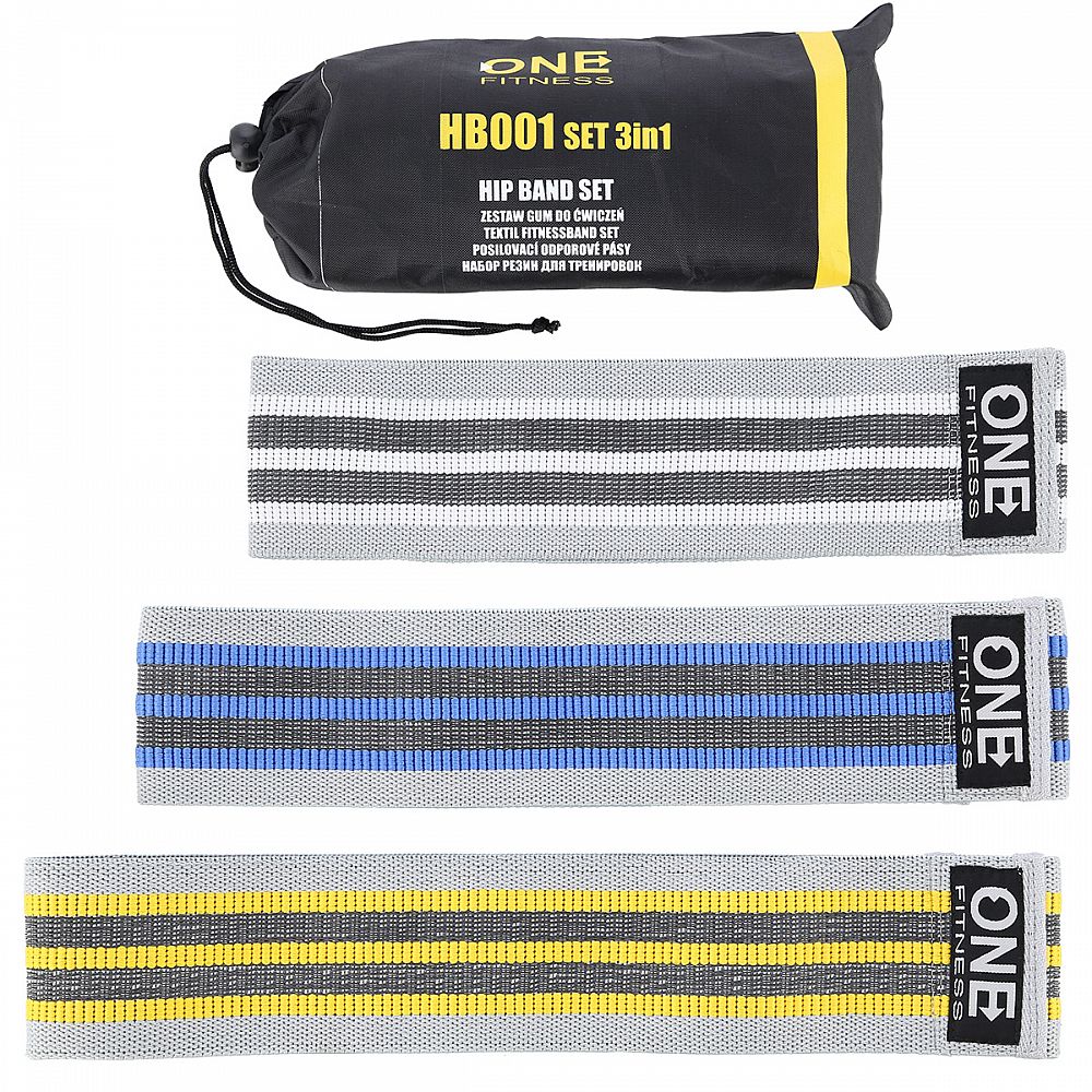 ONE Fitness HB001 je sada odporových "gum" typu Hip band, ktoré sa používajú primárne na tréning sedacích svalov a svalov dolných končatín. HB001 je možné použiť ako samostatný nástroj, alebo v kombinácii s inými cvikmi, ako pomôcka na sťaženie tréningu, napríklad pri drepoch s činkou. Ideálne uplatnenie nájde pri rozcvičke, pár úkrokov s Hip bandom HB001 na stehnách Vám zaručene rozohreje svaly dolných končatín.