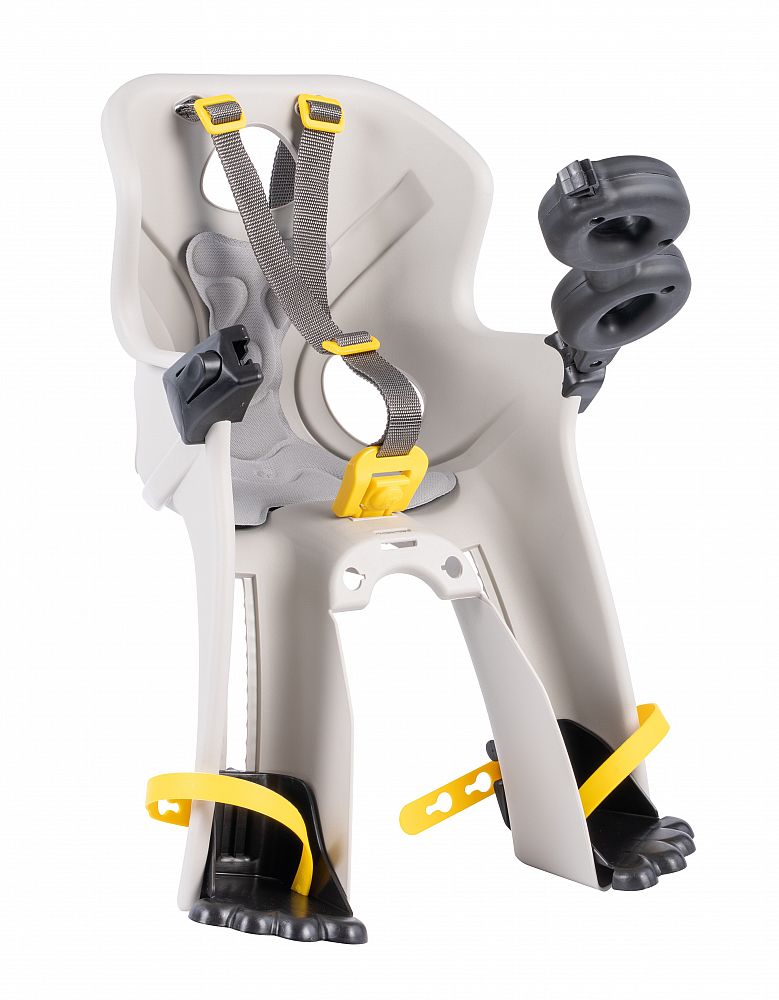- SYSTÉM UPEVNENIA NA PREDNÝ RÁM: Sedačku je možné pripevniť k rámu bicykla. Upevnenie je vybavené oporným blokom s oceľovou konštrukciou. Kompatibilný s rámami s priemerom 28-45 mm a dĺžkou 28-60 mm.