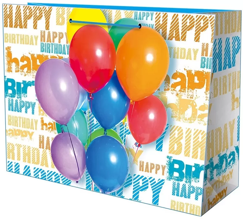 Kvalitná, papierová, darčeková taška s motívom latexových balónikov a nápisom HB.