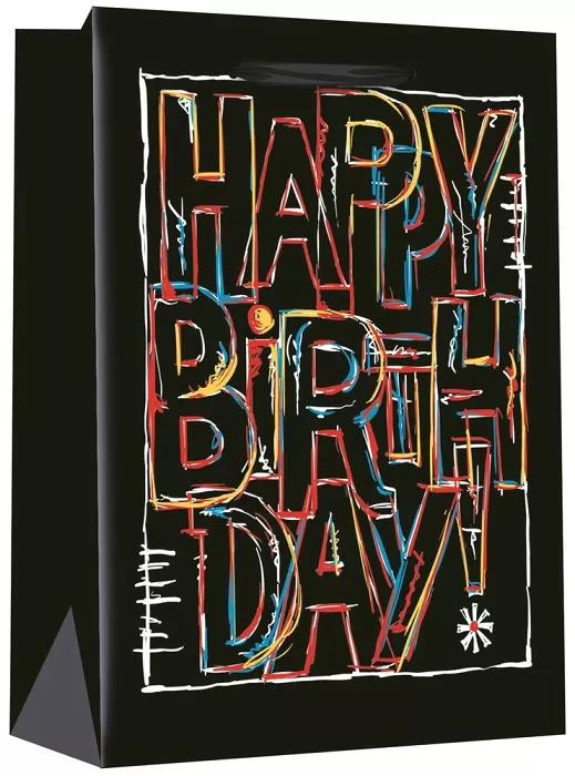 Kvalitná, papierová, darčeková taška s motívom Happy Birthday.