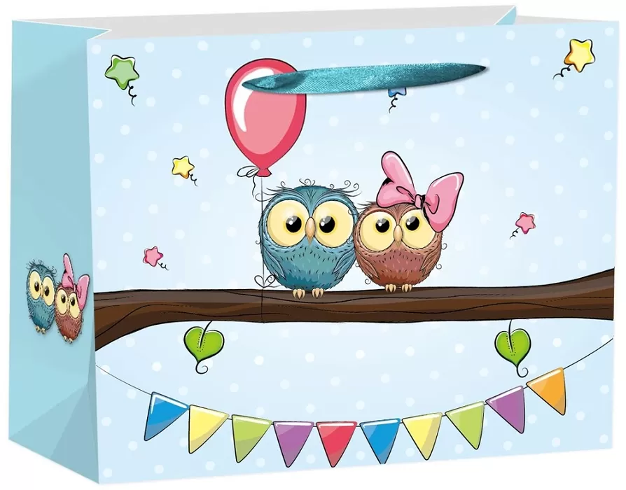 Kvalitná, papierová, darčeková taška s motívom sovy na vetve.