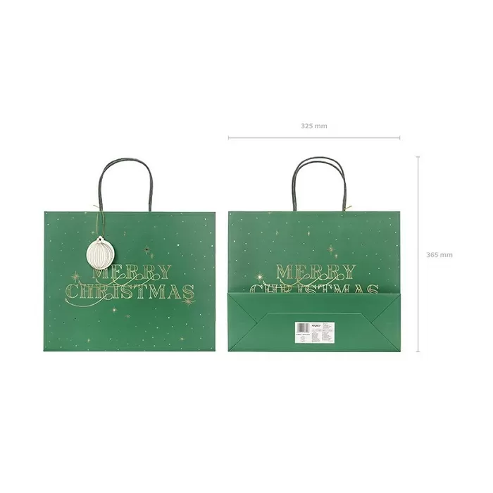Popis: Darčeková taška - Vianočné Merry Christmas zelená