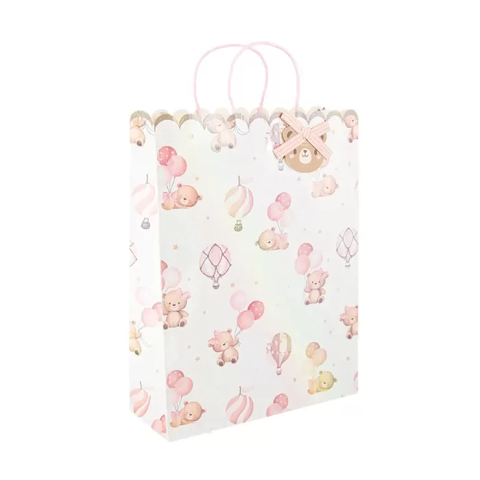 Dárková taška XXL růžoví medvídci je praktickým a zároveň velmi roztomilým řešením pro zabalení větších dárků. Díky své extra velikosti se skvěle hodí na praktické dárky, jako jsou bodyčka, ručníky, dečky nebo výbavička pro miminko, ale i na dárky pro radost, například plyšové a jiné hračky. Jemné pastelově růžové detaily v kombinaci s motivem roztomilých medvídků vytvářejí něžný vzhled, který je ideální pro novorozená miminka i malé dětičky. Holografický odlesk dodává tašce elegantní a hravý efekt, díky kterému dárkové balení působí výjimečně a slavnostně. Dárková taška XXL růžoví medvídci je perfektní volbou pro narození miminka, baby shower, první návštěvu u novorozence nebo dětské oslavy, kdy chcete darovat větší dárek stylově a bez složitého balení. Velikost: 32 x 43,5 x 11,5 cm