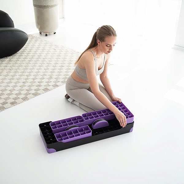 Rovnako ako jeho menší náprotivok má aj AS008L balančné podložky, ktoré sa upevňujú zo spodnej strany stepu. Vďaka nim sa klasický mostík mení v pomôcku pre tréning rovnováhy a stabilizácie, zapája posturálne svaly a zlepšuje motorickú koordináciu.