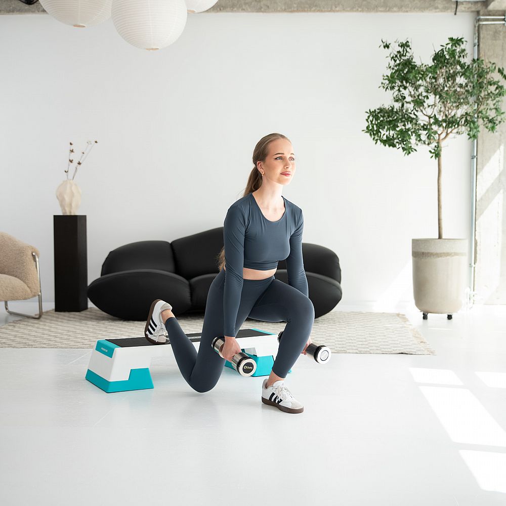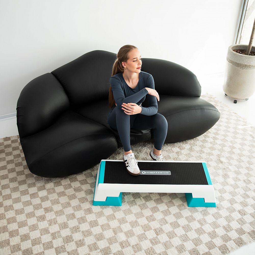 Step je vybavený protišmykovým povrchom, ktorý zaisťuje istý pohyb aj pri dynamickom cvičení. Gumové nožičky zabraňujú posúvaniu stepu a zaručujú stabilitu a bezpečnosť.