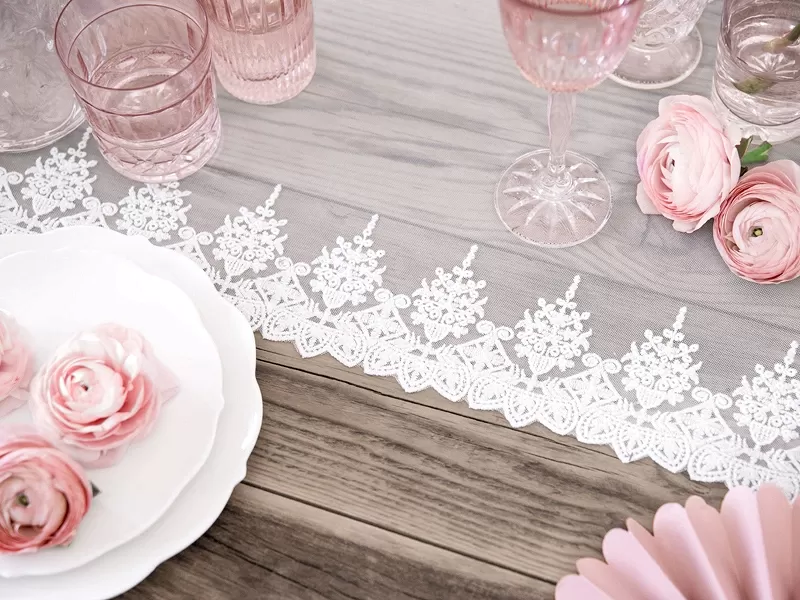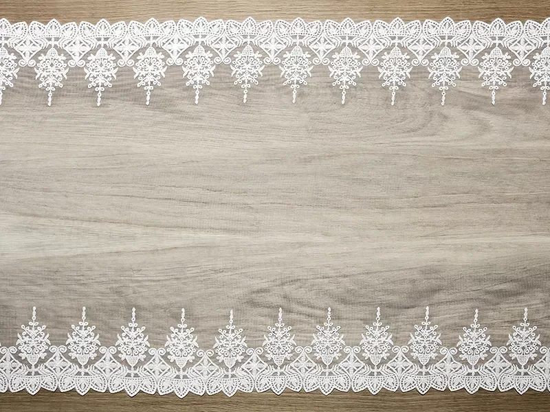 Belavá dekoratívna čipka o šírke cca 45cm, dĺžka cca 9 metrov.