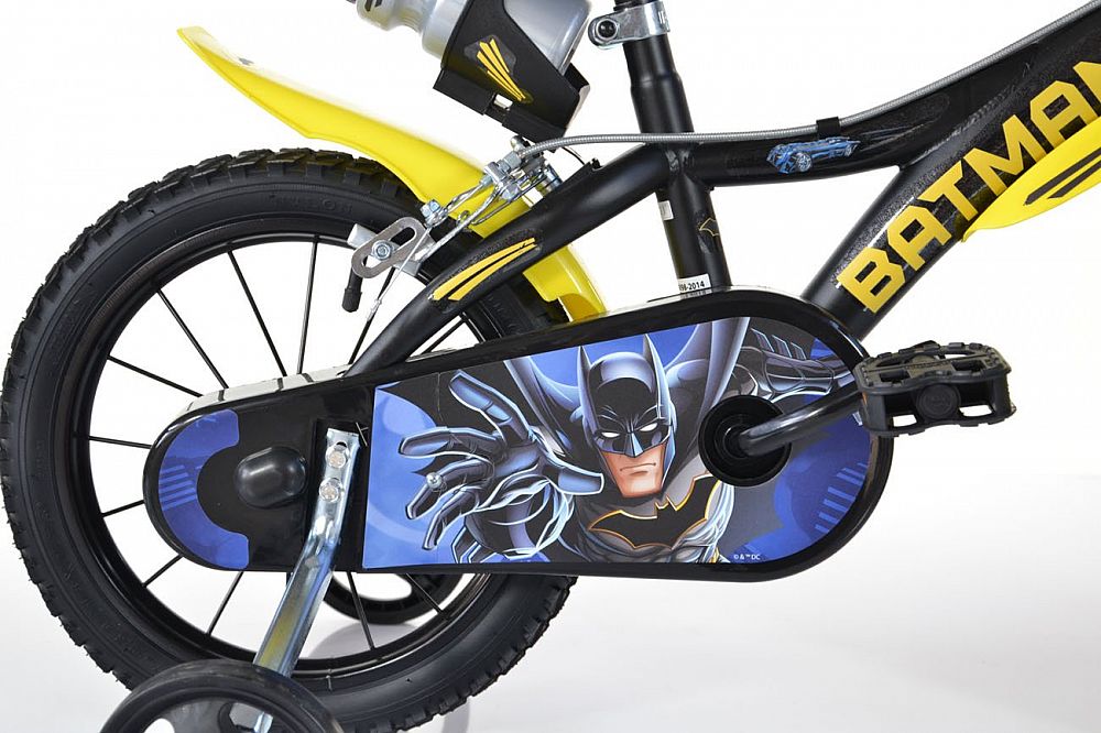 Detský bicykel Dino Bikes s potlačou BATMANsa vyznačuje prepracovaným dizajnom dávajúcim bicyklu športový vzhľad.