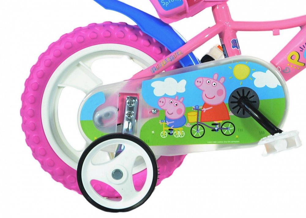 Detský bicykel Dino Bikes s licenčnou potlačou PEPPA PIG (Prasátko Peppa) sa vyznačuje prepracovaným dizajnom dávajúcim bicyklu efektný vzhľad.