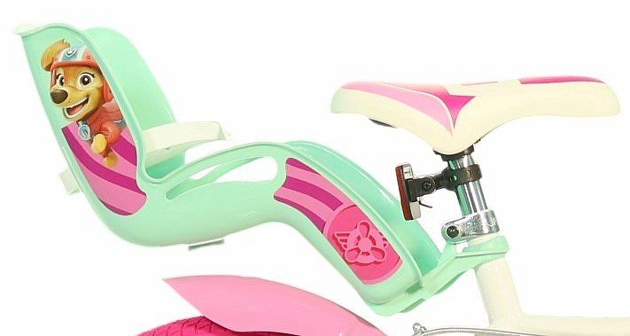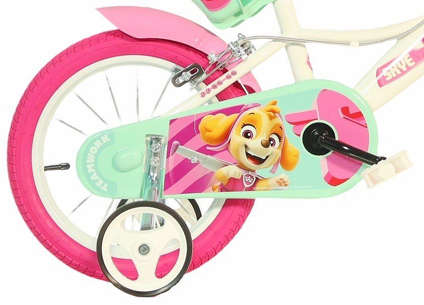 Detský bicykel Dino Bikes s potlačou Paw Patrol (Tlapková patrola) sa vyznačuje prepracovaným dizajnom dávajúcim kolesu ľúbivý vzhľad. Ku bicyklu patria aj doplnky: plastový košík na riadidlách a plastový držiak na bábiky za sedlom bicykla.