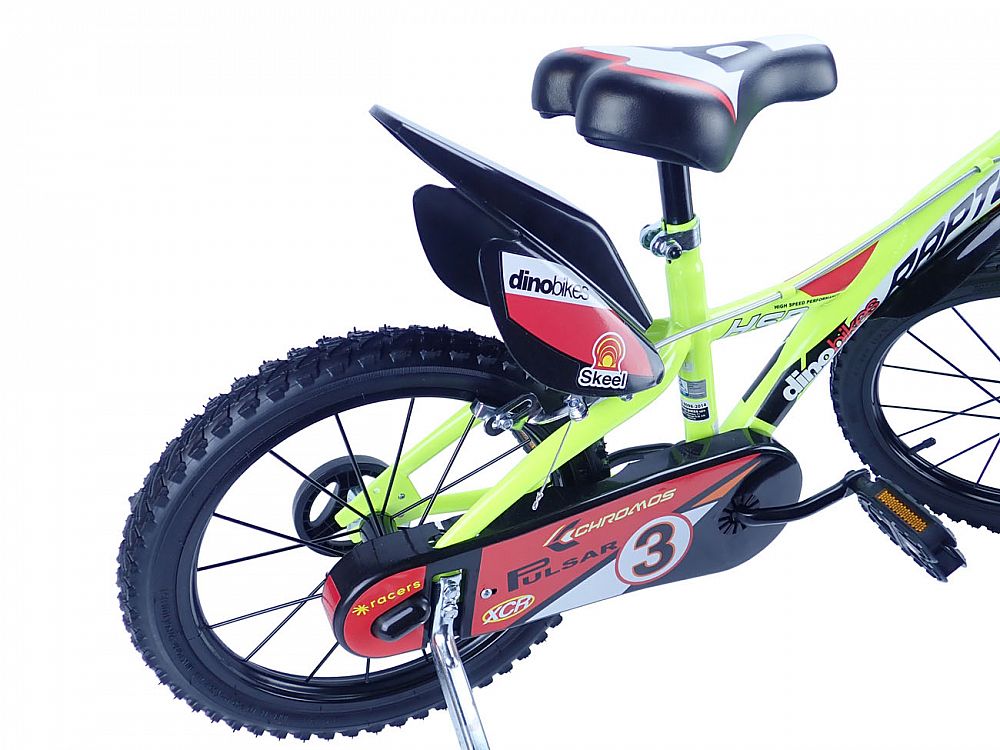 Detský bicykel Dino Bikes Raptor 14" sa vyznačuje prepracovaným dizajnom dávajúcim kolesu ľúbivý vzhľad.