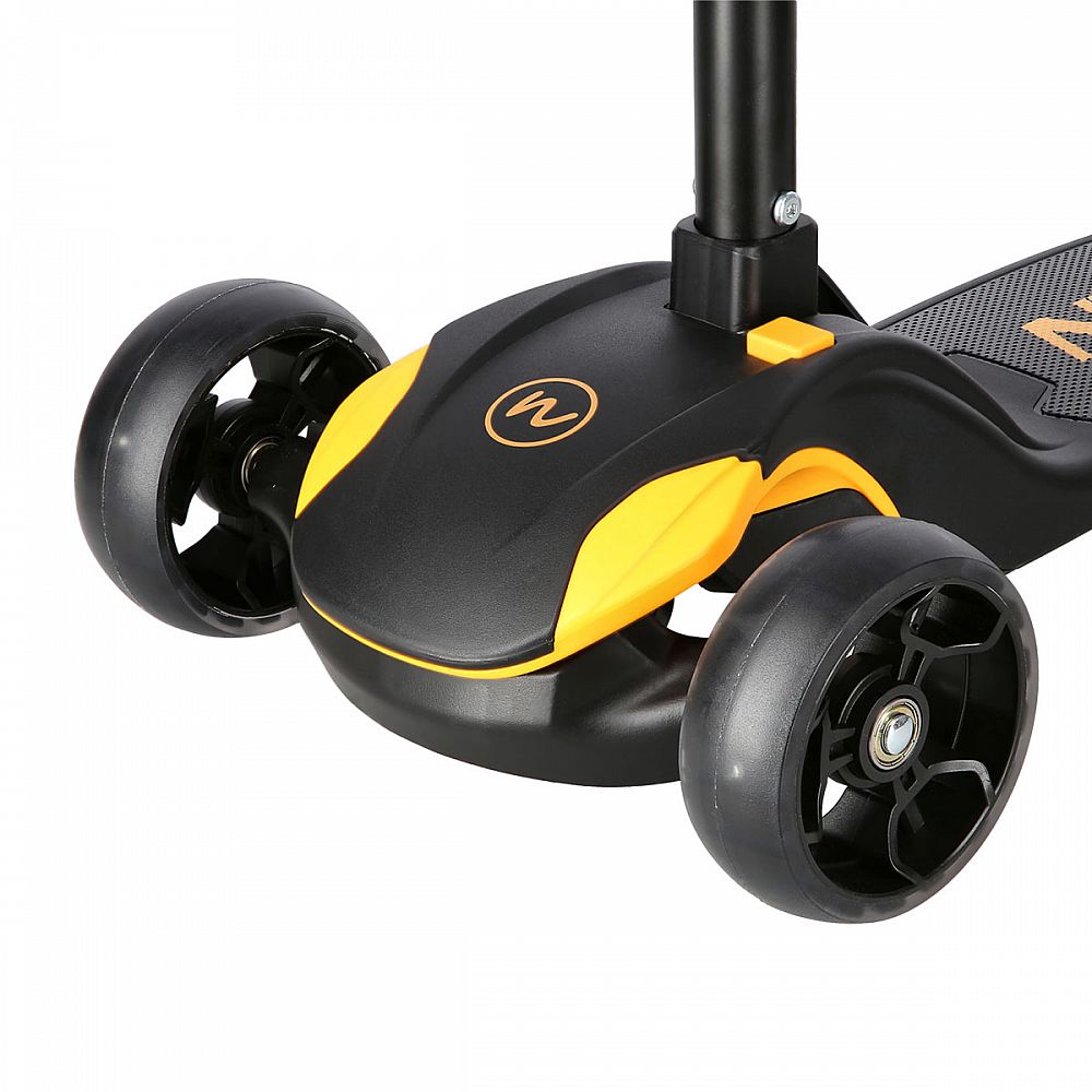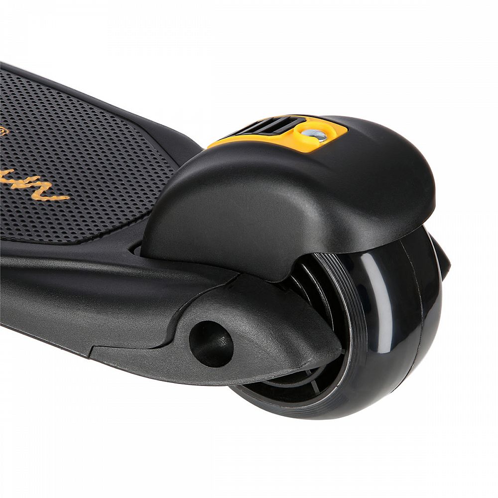 Predné kolieska sú široké 40 milimetrov a zadné koliesko má šírku 50 milimetrov. Kolieska sú osadené ložiskami ABEC 7 pre plynulú jazdu a navyše sú vybavené svietiacimi LED diódami, ktoré slúžia ako zaujímavý, vizuálny prvok, zvyšujú záujem detí av neposlednom rade zvyšujú viditeľnosť kolobežky napríklad za šera. Kolieska svietia automaticky počas ich otáčania. Zadný blatník slúži ako nášľapná brzda na bezpečné zastavenie kolobežky.