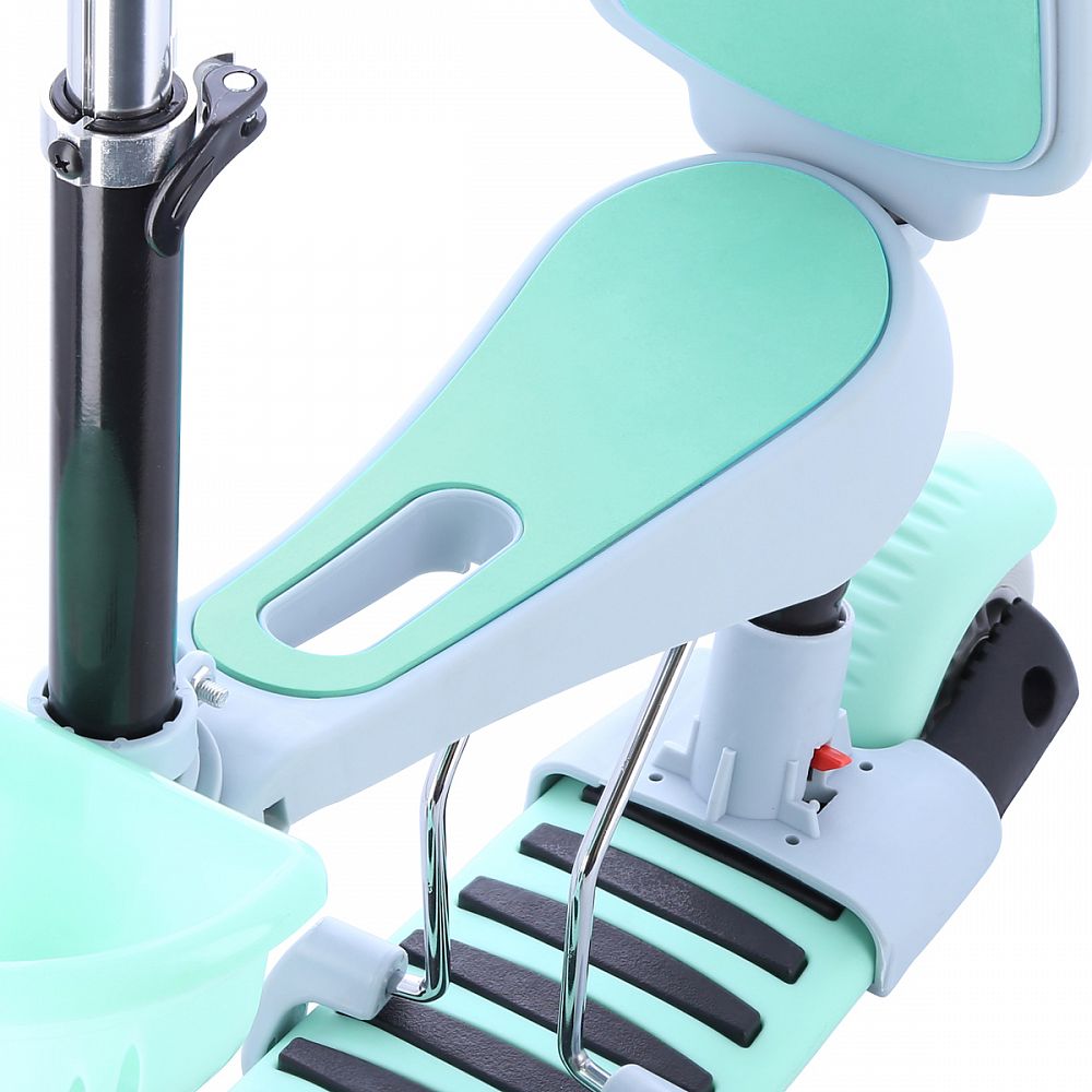 Kolobežku získame po následnej demontáži sedátka. Deck je opatrený prúžkami z tvrdej gumy, ktoré zabraňujú skĺznutiu nohy zo stúpačky. Tri kolieska sú garanciou vysokej stability. Vďaka riadeniu pomocou naklápania je kolobežka maximálne bezpečná a nehrozí jej prevrhnutie. Teleskopické riadidlá slúžia primárne na udržanie rovnováhy a sú opatrené gripy z termoplastickej gumy pre istý úchop. Svietiace kolieska sú osadené ložiskami ABEC5. Zadné koliesko je vybavené nášľapnou brzdou Flex Fender pre rýchle a bezpečné zastavenie. Nosnosť kolobežky je 75 kilogramov.