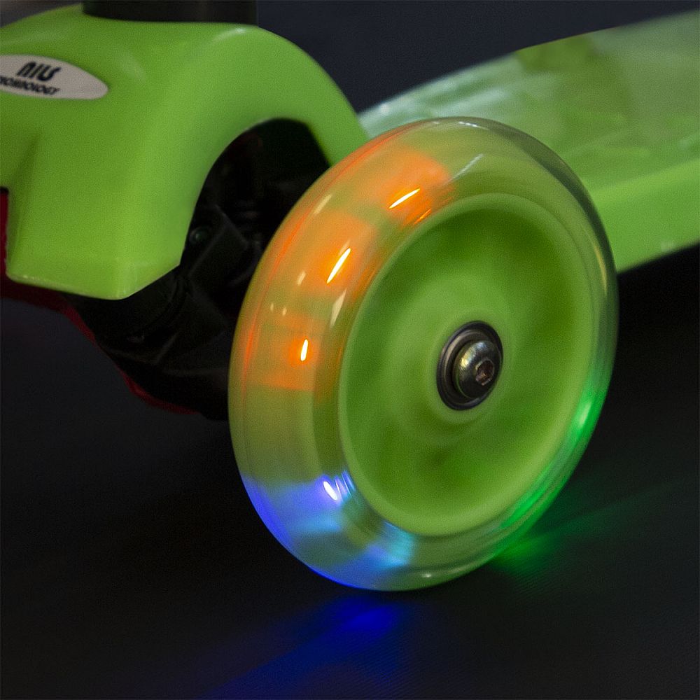 NILS EXTREME HLB06 je trojkolesové kolobežka pre najmenších. Tri kolieska sú garanciou vysokej stability. Vďaka riadenie pomocou naklápania je kolobežka maximálne bezpečná a nehrozí jej prevrhnutie. Teleskopická riadidlá slúži primárne pre udržanie rovnováhy. Zadná zdvojené koliesko je opatrené širokou brzdou a navyše je uložené v silentbloku pre tlmenie drobných nerovností. Svietiace kolieska sú osadené ložiskami ABEC7. Kolobežku najlepšie využijete počas jazdy po rovnom, spevnenom povrchu.