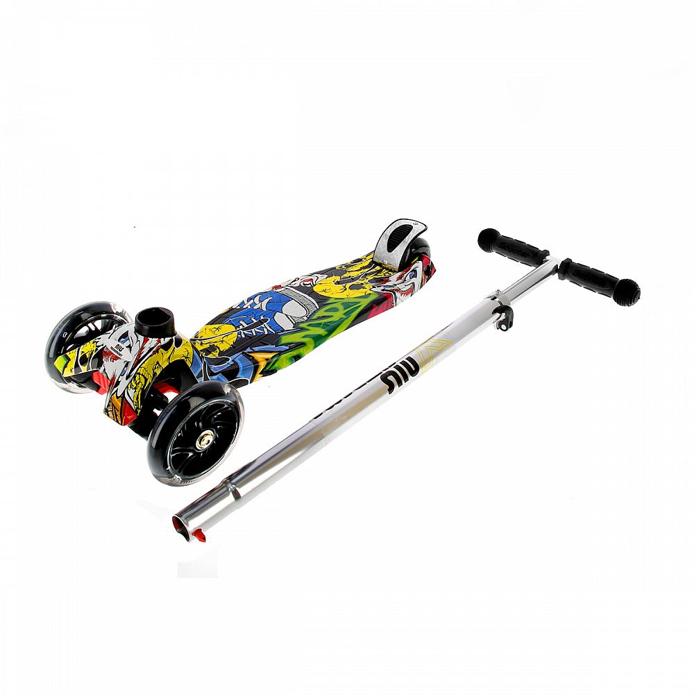 NILS EXTREME HLB06P je trojkolesové kolobežka pre najmenších. Tri kolieska sú garanciou vysokej stability. Vďaka riadenie pomocou naklápania je kolobežka maximálne bezpečná a nehrozí jej prevrhnutie. Teleskopická riadidlá slúži primárne pre udržanie rovnováhy. Zadná zdvojené koliesko je opatrené širokou brzdou a navyše je uložené v silentbloku pre tlmenie drobných nerovností. Svietiace kolieska sú osadené ložiskami ABEC7. Moderný dizajn upúta pozornosť každého vrstovníka. Kolobežku najlepšie využijete počas jazdy po rovnom, spevnenom povrchu.