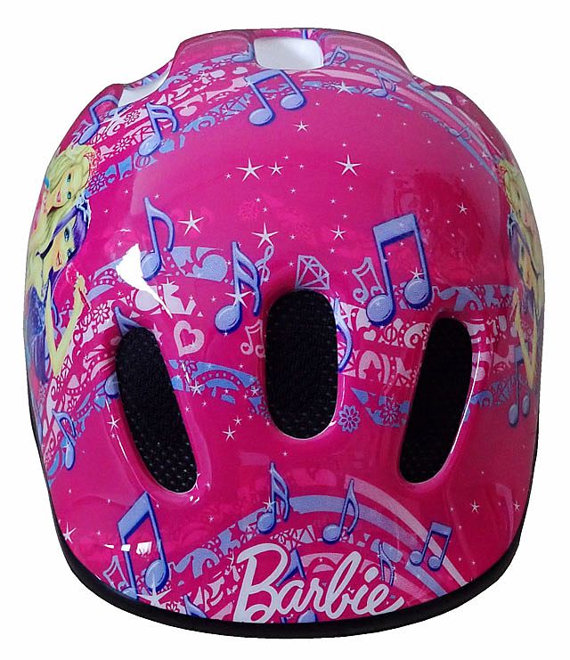 Cyklohelma dievčenská s potlačou Barbie od talianskej firmy Mondo, 6 veľkých vetracích otvorov, veľkosť XS (44-48cm), sieťka proti hmyzu v prednej časti helmy, biely EPS, sťahovací pásik so skrutkou okolo hlavy pre dokonalé upnutie, veľkosť XS (44-48 cm), hmotnosť helmy je 18.