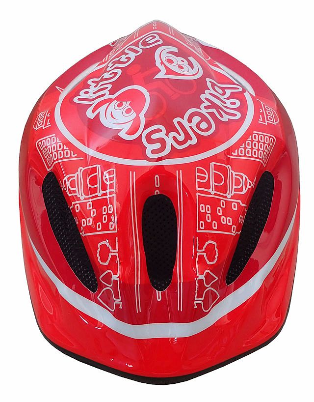 Cyklistická helma detská s potlačou, 5 veľkých vetracích otvorov, sieťka proti hmyzu, mäkká výplň s chladivými účinkami vo vnútri helmy, sťahovací pásik so skrutkou okolo hlavy pre dokonalé upnutie, veľkosť M (52 - 56 cm), hmotnosť 220 g.