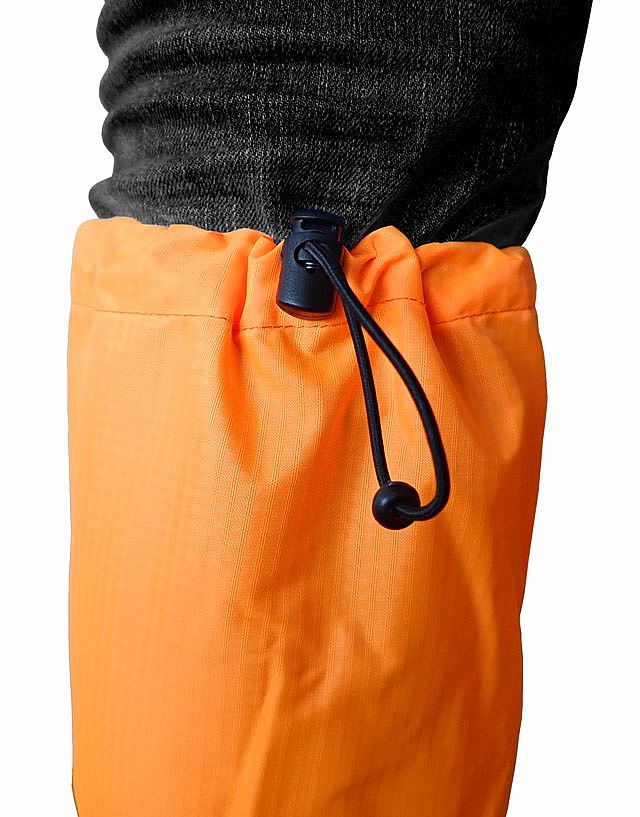 - Návlek je na spodnej strane vybavený sťahovacím polyamidovým pásikom s plastovou prackou na upevnenie návleku pod topánkami proti vyhrňovaniu pri chôdzi ťažkým terénom. Pre chôdzu v ľahšom teréne je návlek vybavený na rýchle a jednoduché upevnenie na šnurovadlo topánok mosadzným háčikom. Vďaka pružným gumám a sťahovacej šnúre na lýtku je návlek dodávaný v jednej univerzálnej veľkosti.