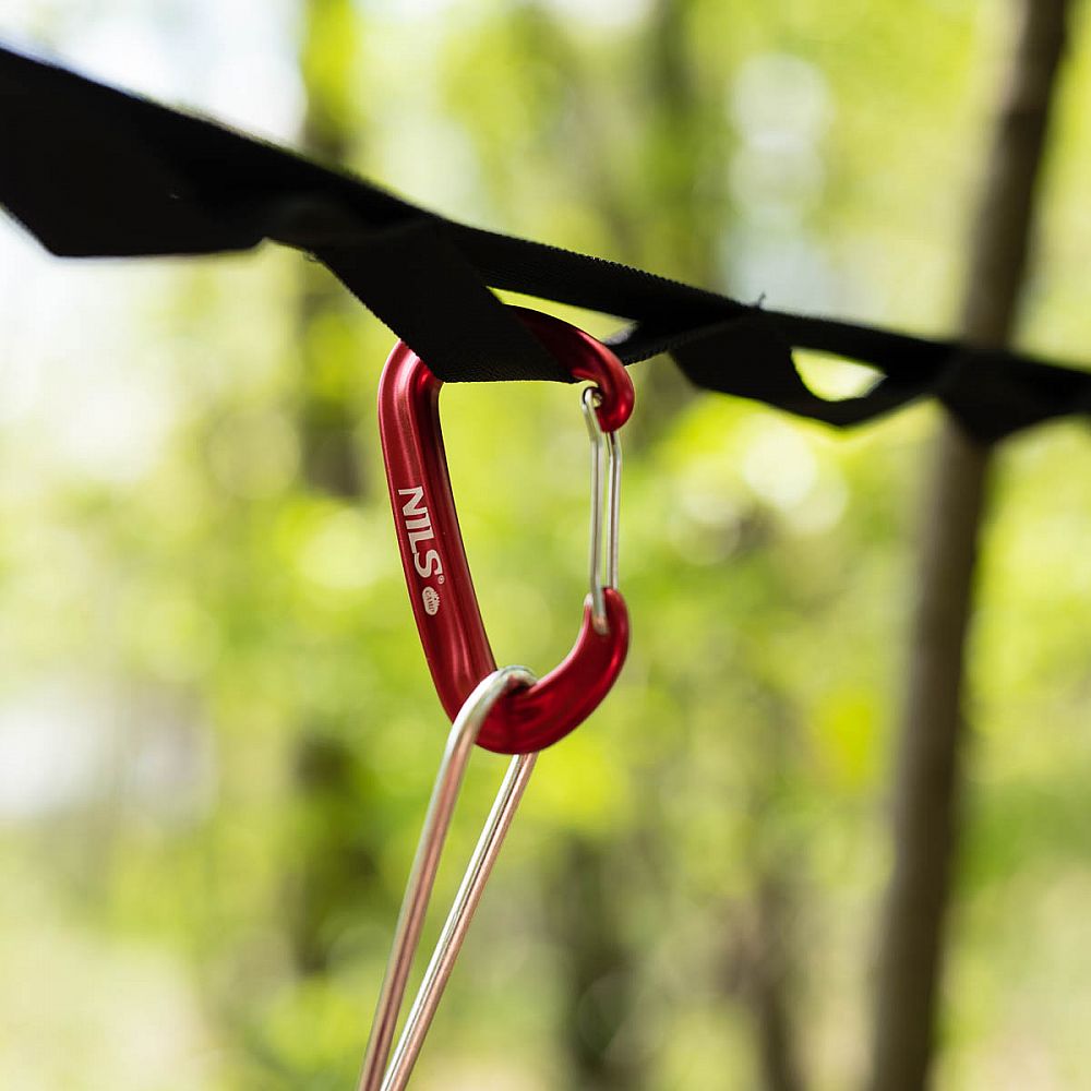 Hliníková karabína NILS Camp NC1707 s nosnosťou 1.200 kilogramov.