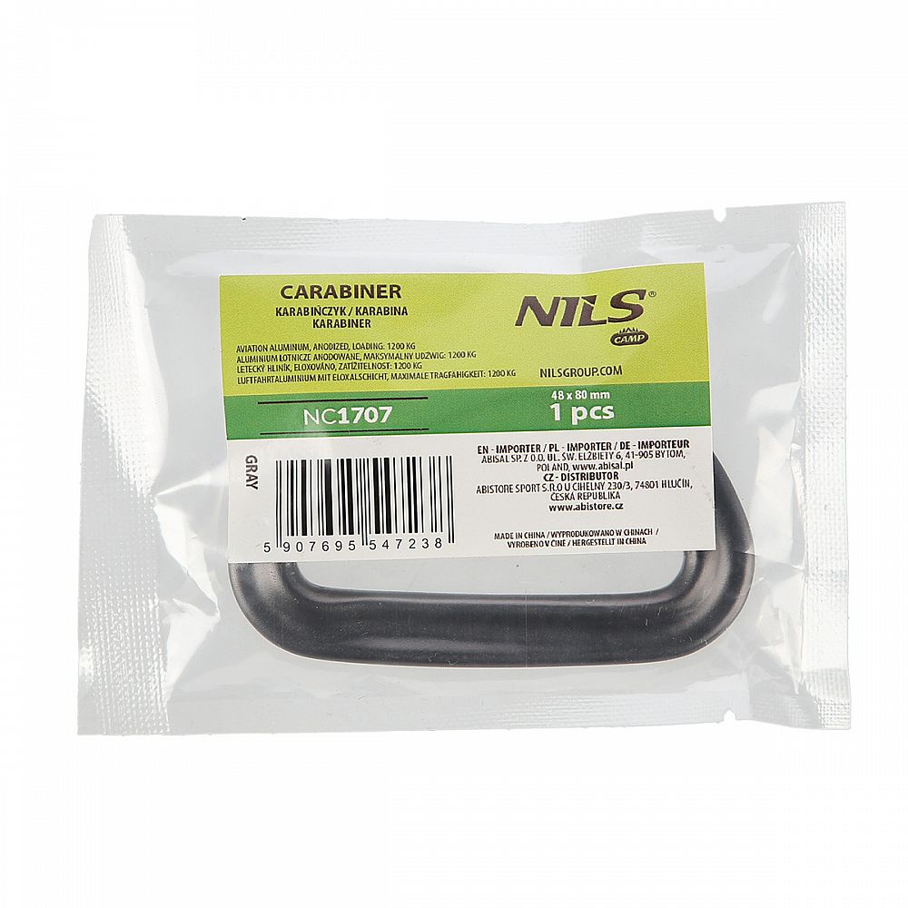 Popis: Hliníková karabína NILS Camp NC1707 12kN sivá