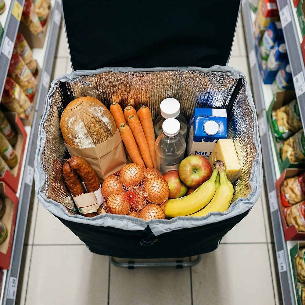 Vnútro tašky je vyložené hliníkovou fóliou, vďaka čomu dokonale udržuje teplotu produktov - ako chladných, tak teplých. Je to ideálne riešenie na prepravu mrazených potravín, čerstvej zeleniny, nápojov alebo hotových jedál. Vozík sa preto hodí nielen na nákupy, ale aj ako mobilná termotaška na výlety a pikniky.