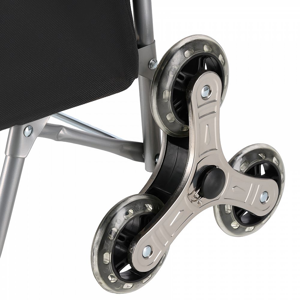 Osobitnú pozornosť si zaslúži systém koliesok – tri kolieska do trojuholníka sa otáčajú okolo svojej osi, čo výrazne uľahčuje prekonávanie schodov, obrubníkov a iných prekážok. Toto riešenie je ideálne pre obyvateľov bytových domov a osoby pohybujúce sa v mestskom priestore.