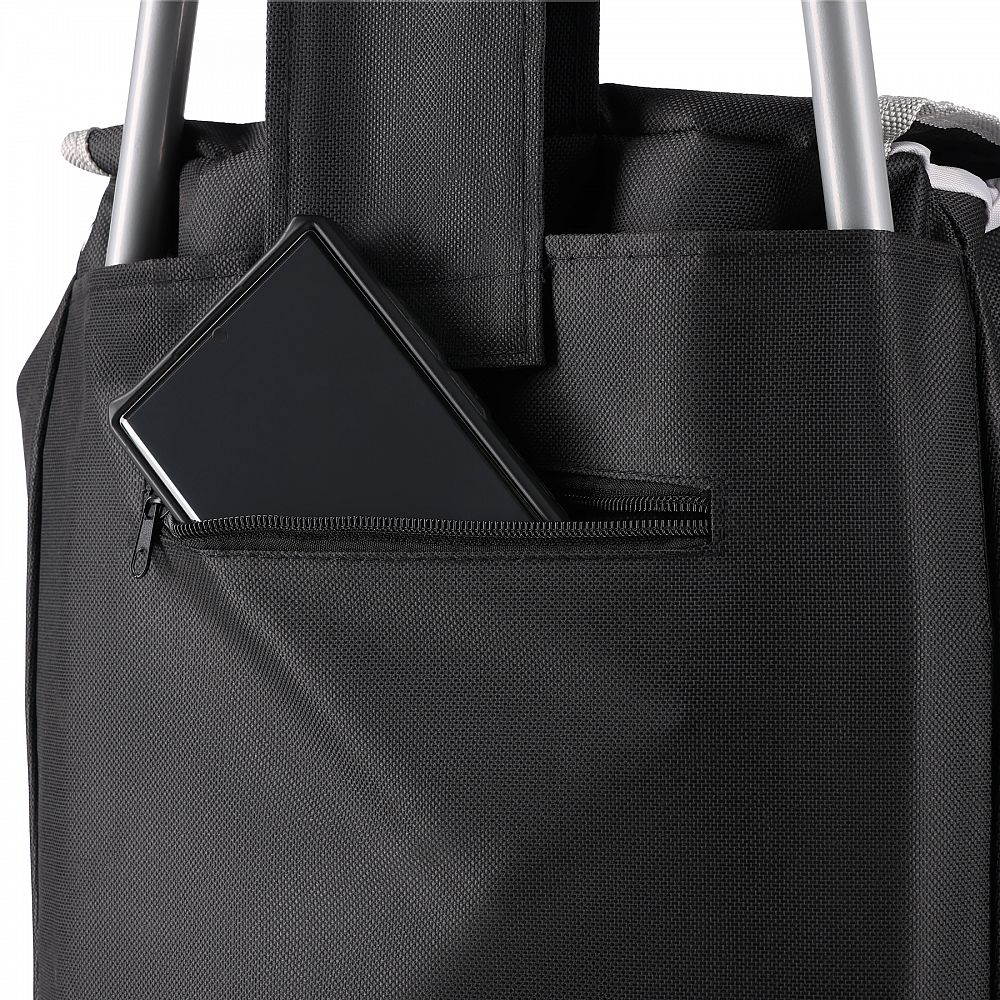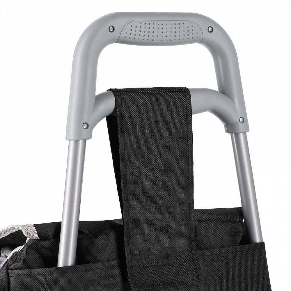 Konštrukcia umožňuje zloženie spodnej časti rámu a sňatie koliesok stlačením tlačidla uprostred. Po zložení taška zaberá málo miesta, takže sa ľahko zmestí do kufra auta, za skriňu alebo do výklenku. Je to ideálne riešenie pre tých, ktorí ocenia funkčnosť v kombinácii s kompaktným skladovaním.