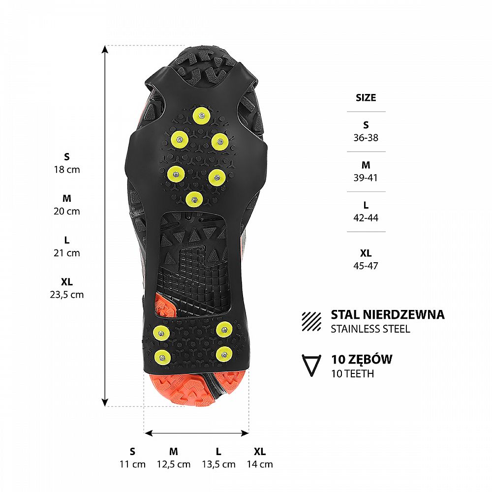 NILS Camp NC1702 sú základné nesmeky - protišmykové návleky na topánky, ktoré poskytujú skvelú priľnavosť na klzkom povrchu pokrytom ľadom alebo blatom. Sú tiež ideálne na zimné obdobie v meste. NC1702 sú veľmi ľahké a ľahko sa nasadzujú, takže výrobok je určený všetkým bez rozdielu veku.