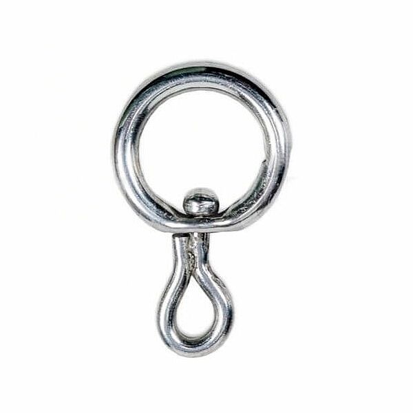 Zvárané, otočné očko zo silného oceľového drôtu s priemerom o 7 mm. Očko je otočné o 360° a zabraňuje zamotaniu reťazí alebo lán pripevnených ku krúžku.