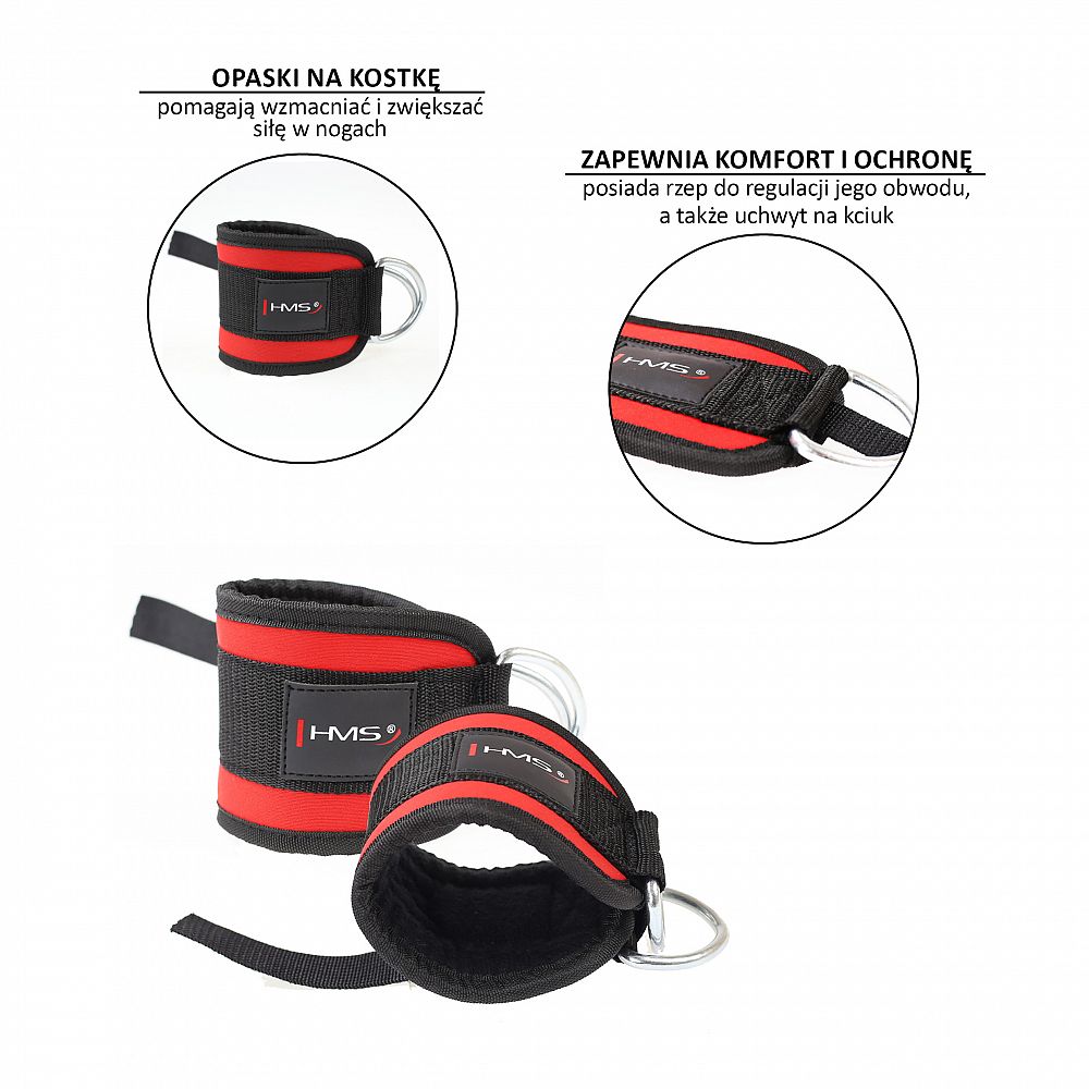 Popruh na členok HMS je miniatúrny cvičebná pomôcka, vhodná na precvičenie adduktory, abduktory, hamstringov a zadku. Popruh sa dá pripevniť k posilňovacej veži a tiež k rôznym expandérom.