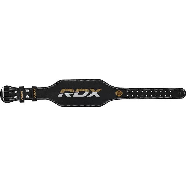 RDX Vzpieračský opasok GYM BELT 4palcový kožený, čierno zlatý, S - S