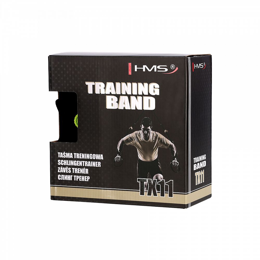 Závesný posilňovací systém HMS TX11 je viacúčelová sada popruhov fungujúci na princípe posilňovanie s vlastnou hmotnosťou, systém možno ľahko uchytiť ako do dverí, tak vďaka karabíne do akéhokoľvek priestoru. Konce týchto popruhov sú opatrené mäkkými úchopy pre ruky a nohy. Jednoduchý, ale veľmi efektívny systém posilňovanie proti vlastnej hmotnosti sa stal rýchlo veľmi obľúbeným u všetkých typov používateľov. Toto ražízení si zapáčili aj profesionálni športovci, ktorí sa závesným zariadením naberajú kondíciu na sezónu. Hlavnými prednosťami posilňovača súpravy TX11 sú nízke obstarávacie náklady, vysoká účinnosť a nenáročnosť na skladovanie.