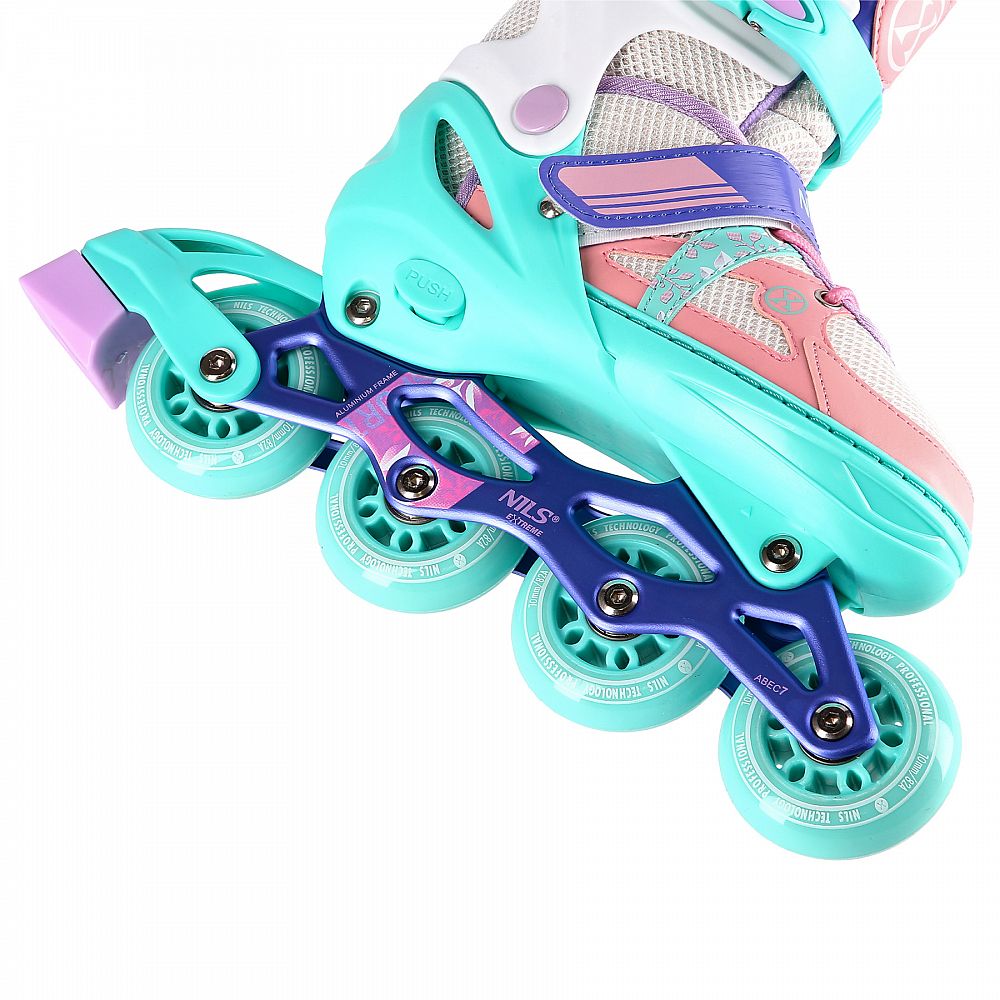 Popis: Kolieskové korčule NILS Extreme NJ1828A bielo-mätové