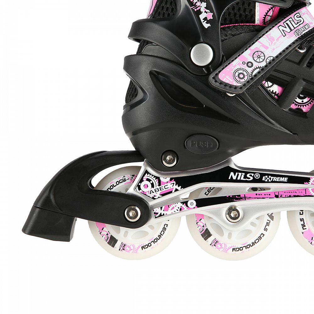 NILS Extreme NH10905 je obľúbený set korčúľ s variabilným podvozkom, svietiacimi kolieskami a nožom na ľad. 2. generácia prináša nový, svieži vzhľad korčúľ. Model HN10905 je určený pre začínajúcich a pokročilých korčuliarov.