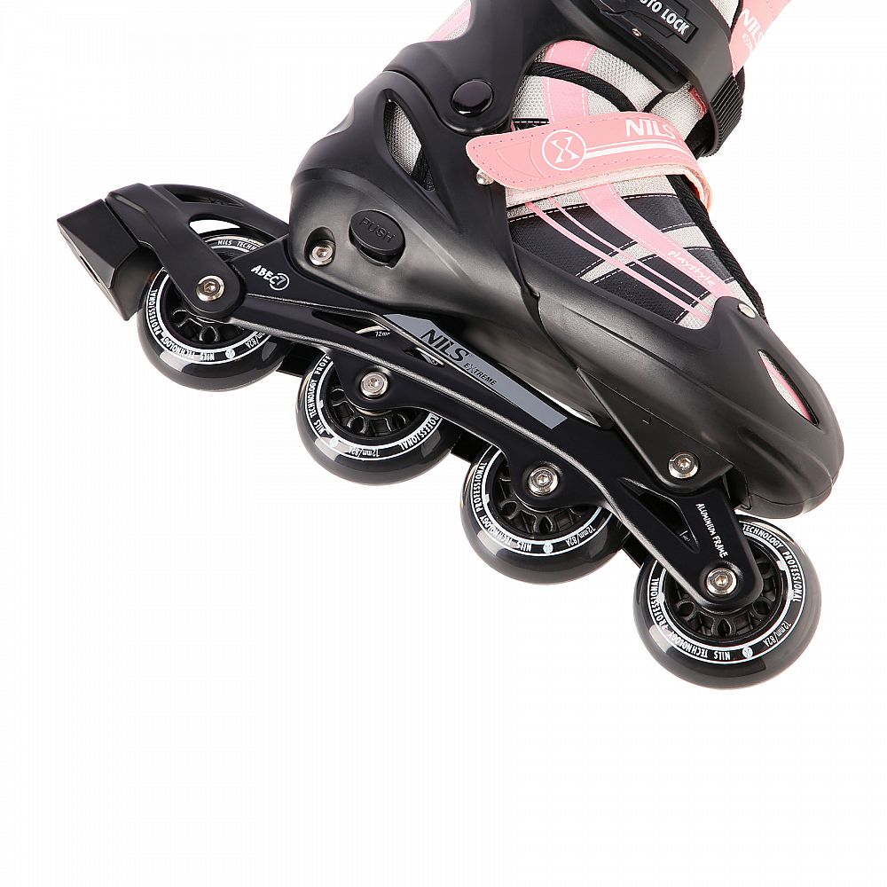 Kolieskové korčule NILS Extreme NH18366A sú určené na rekreačné prechádzky pre začínajúcich a stredne pokročilých korčuliarov. Model NH18366A v sebe spája pútavý dizajn a kvalitné materiály. Model má vymeniteľný podvozok a korčule tak využijete ako na asfalte, tak na ľade.