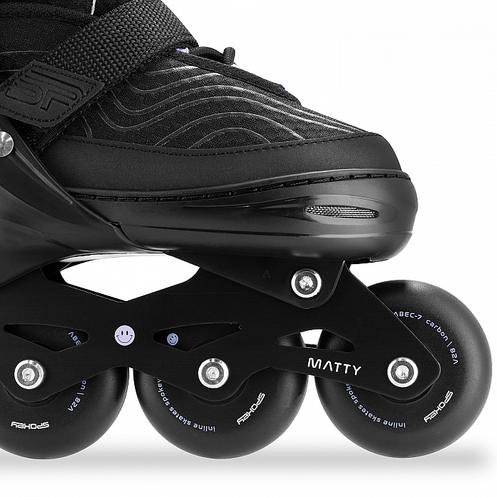 Ak hľadáte kolieskové korčule na dlhé roky, stavte na model MATTY s nastaviteľnou veľkosťou. Budete si ich môcť optimálne prispôsobiť svojej nohe, vďaka čomu vám budú pevne sedieť a nebudú tak meniť svoju polohu. A čo viac - porastú s vami! Sú tiež najlepšou voľbou pre tých, ktorí nosia problematickú "hraničnú" veľkosť. Vrcholom pohodlia pri jazde je komfortná vnútorná topánka, ktorá v kombinácii s trojitým systémom zapínania (tkaničky, suchý zips a dvojdielna pracka) zaisťuje najvyššiu úroveň bezpečnosti.