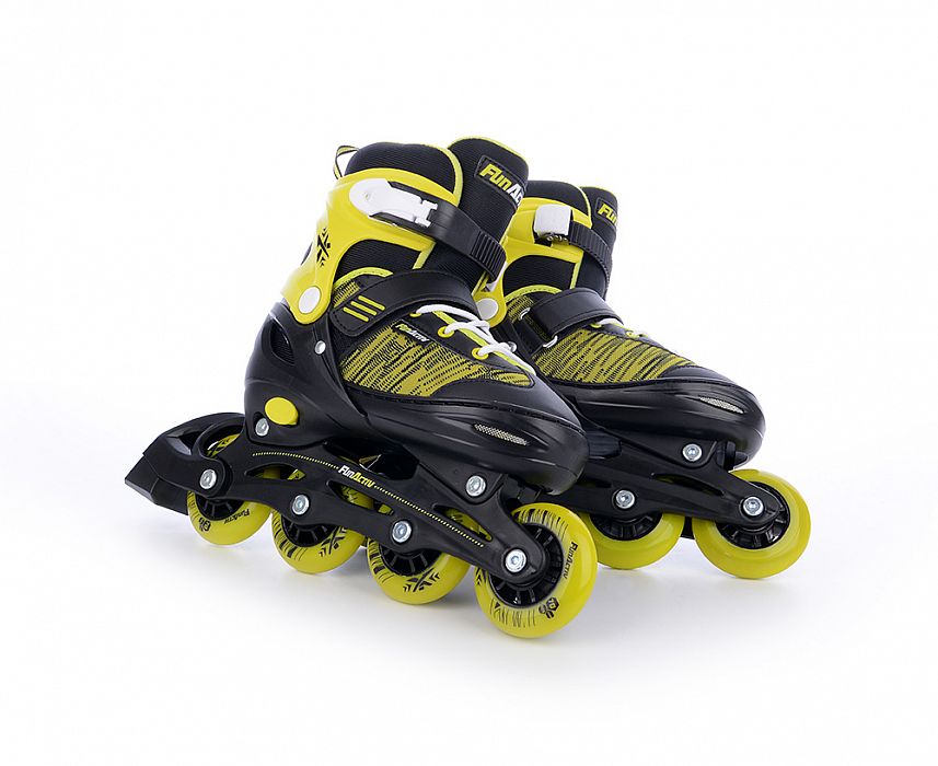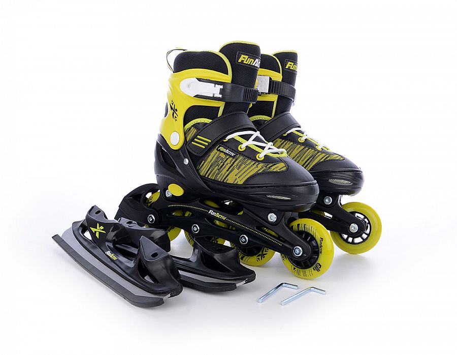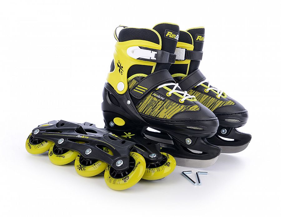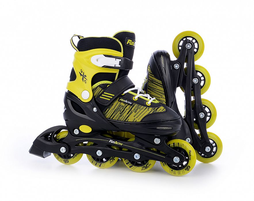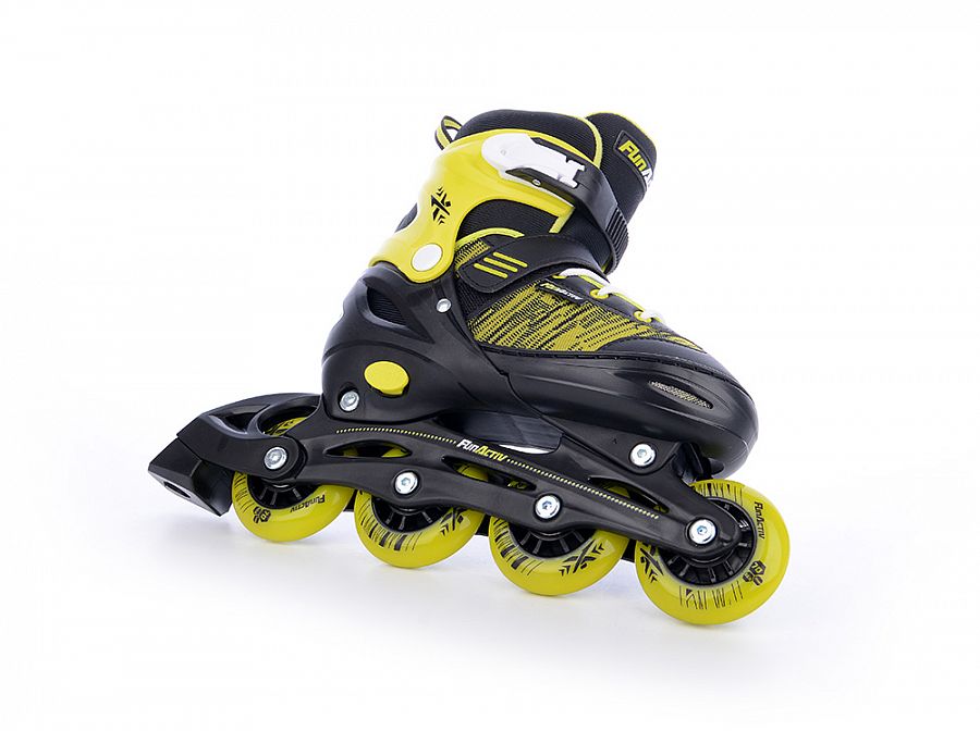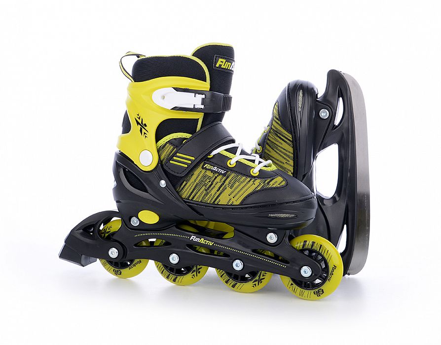 Detské rozťahovacie korčule FunActiv so špeciálnou duálnou konštrukciou pre celoročné rekreačné korčuľovanie. Konštrukčný systém umožňuje zámenu zimných korčúľ za podvozok s kolieskami - tzn. umožňuje jednoduchú prestavbu na in-line korčule. Mäkká rýchloschnúca výstelka zaisťuje pohodlnosť detskej nohy. Prednosťou korčúľ je jednoduchá nastaviteľnosť veľkosti o 3 čísla jednoduchým stlačením tlačidla v bočnej časti skeletu.