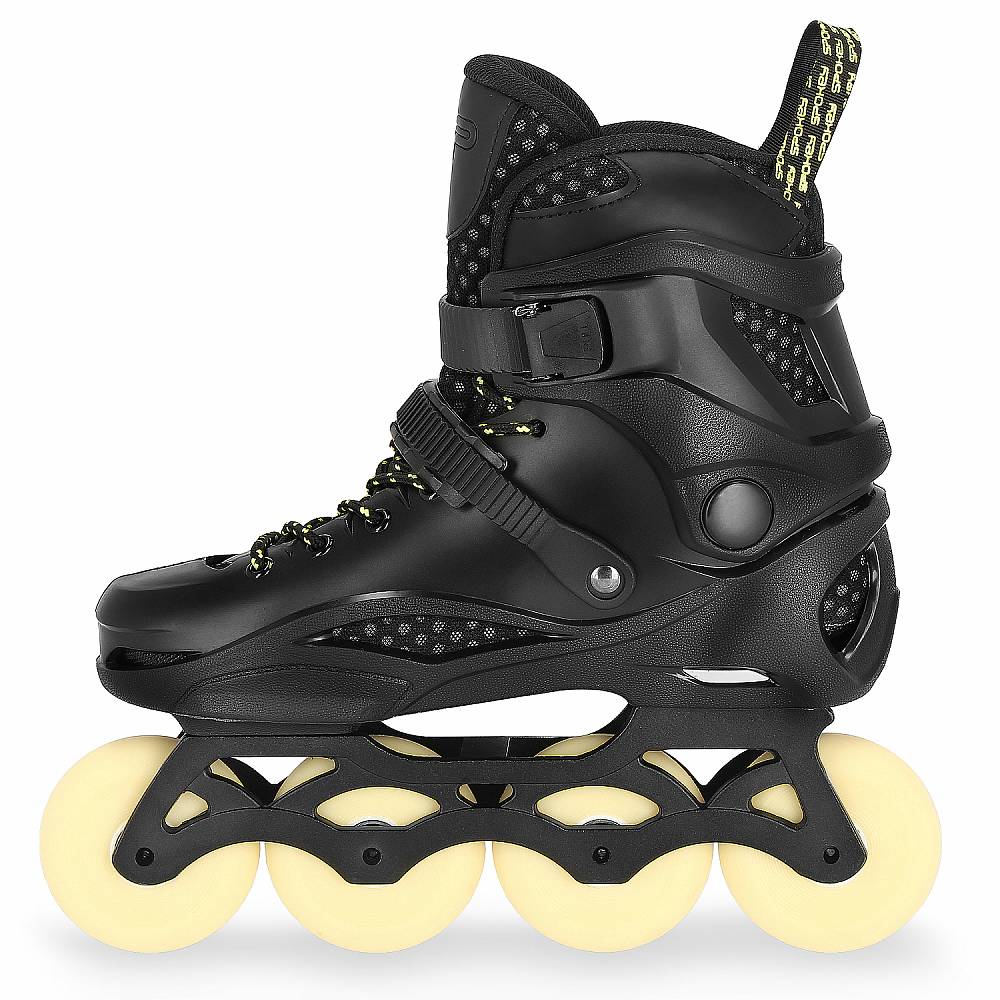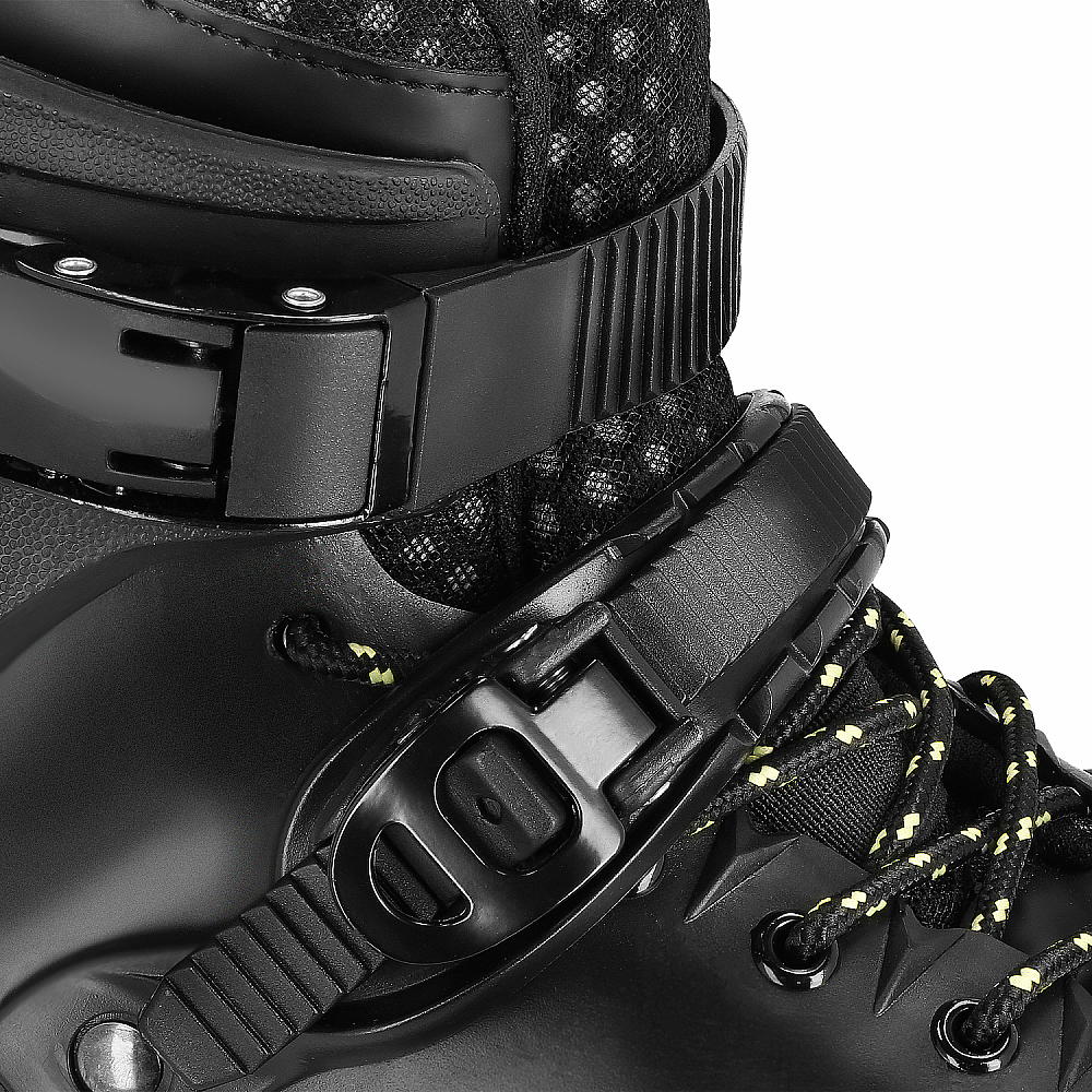 - trojitý systém zapínania na dve pracky a šnúrky zaisťujú optimálne prispôsobenie topánky nohe a bezpečnosť pri rýchlom slalome či mestskom korčuľovaní