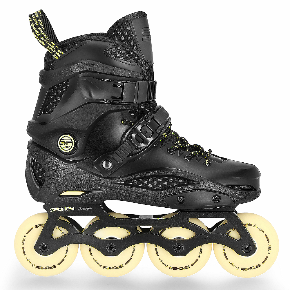 Trojitý systém zapínania znižuje riziko zranenia a pomliaždenia, a zároveň zaisťuje skvelú kontrolu a ovládateľnosť kolieskových korčulí. Konštrukcia modelu Freespo taktiež eliminuje chyby, ktoré sa často objavujú u začínajúcich korčuliarov, ako sú napríklad deformity členku. Kolieskové korčule umožňujú rýchlu a obratnú jazdu po meste, ako aj jazdu freestylovú!