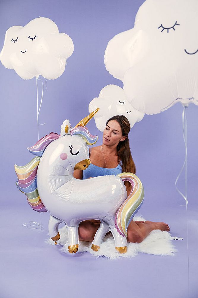 Fóliový balónik v tvare jednorožca o veľkosti 122 cm. Jedná sa o trblietavý balónik. Fóliové balóniky sú vhodným doplnkom výročnej, novoročnej i narodeninovej výzdoby.