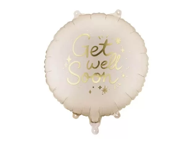 Potešte svojich blízkych milým gestom a poprajte im skoré uzdravenie pomocou štýlového fóliového balónika „Get Well Soon“. Tento elegantný okrúhly balónik v jemnej béžovej farbe so zlatým nápisom a dekoratívnymi hviezdičkami pôsobí veľmi vkusne a zároveň prináša pozitívnu energiu. Tento balónik je krásnym spôsobom, ako vyjadriť podporu, povzbudiť a vykúzliť úsmev na tvári každému, kto sa práve necíti najlepšie. rekonvalescencie alebo ako súčasť balíčka s prianím skorého uzdravenia. Vďaka kvalitnej fólii si po nafúknutí dlho udrží svoj tvar aj vzhľad. Možno ho plniť vzduchom aj héliom.