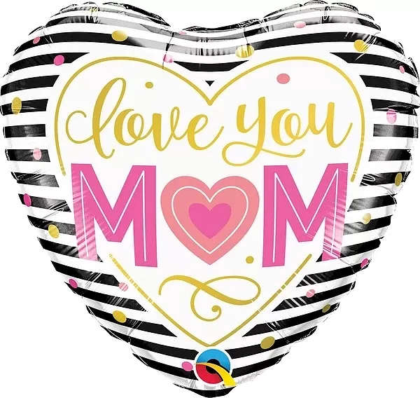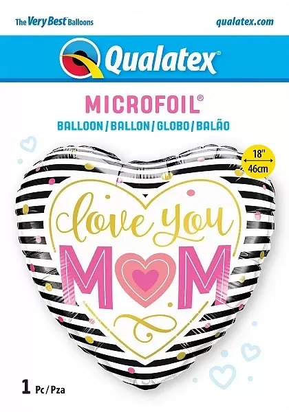 Fóliový balónik v tvare srdca s potlačou love you mum. Fóliové balóniky sú vhodným doplnkom výročnej, novoročnej aj narodeninovej výzdoby.
