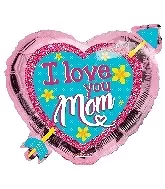 Fóliový balónik v tvare srdca v ružovej farbe so šípom a modrým srdcom s nápisom "milujem ťa mami". Fóliové balóniky sú vhodným doplnkom výročnej, novoročnej i narodeninovej výzdoby a na oslavy oznámenia pohlavia bábätka.