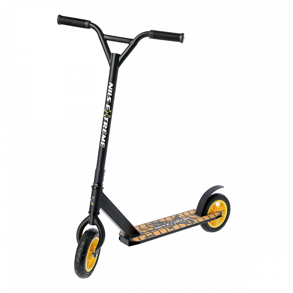 Kolobežka NILS Extreme HC020 je kombináciou freestyle a terénne kolobežky. Vďaka pumpovanými kolieskam môžete triky vykonávať na růzých typoch povrchov. Nylonové kolieska sú osadené ložiskami ABEC 9 a pumpovací pneumatikou s priemerom 200 mm. Model HC020 je vybavený prítlačnú brzdou (blatníkom) na zadnom kolese. Pevná konštrukcia predurčuje kolobežku k vykonávaniu freestyle trikov, pri ktorých využijete aj možnosť pretáčaniu riadidiel o 360 °.