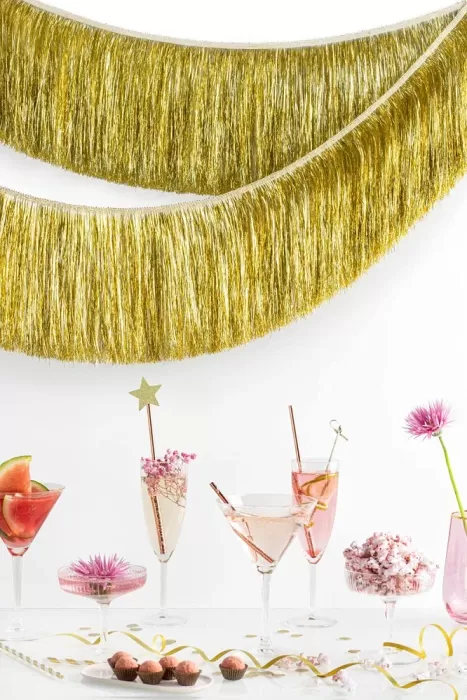 Třásňová girlanda ve zlaté barvě je skvělou dekorací narozeninové oslavy nebo silvestorvských oslav. Jednoduchá výzdoba, která navodí tu správnou slavící atmosféru. Dodejte svojí oslavě lesk se zlatou třásňovou girlandou.✨ Rozměry: cca 20 x 135 cm Balení: 1 ks