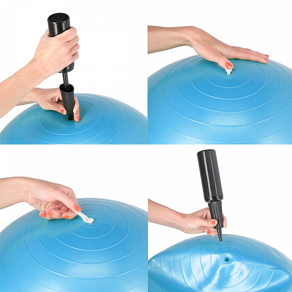 Gymnastická lopta YP05N je dodávaná s pumpičkou pre nafúknutie.